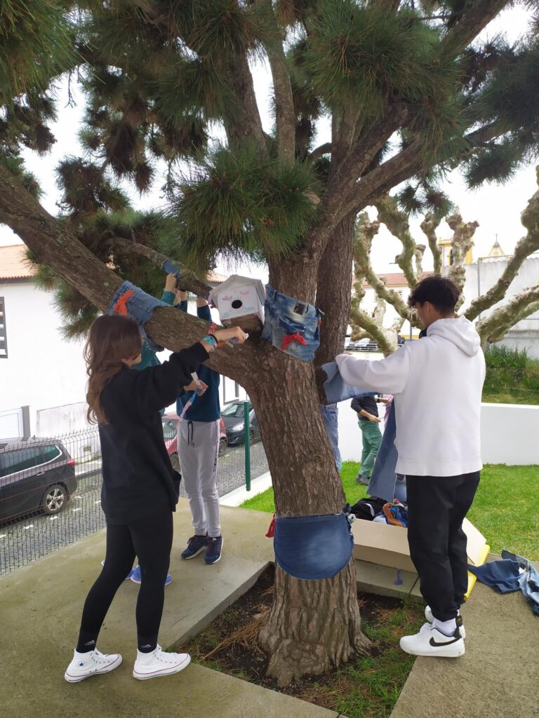 Este ano, com a temática “Têxteis circulares e sustentáveis: o lixo está fora de moda!”, procurou-se destacar o impacte que a produção de têxteis tem no nosso planeta. Para o efeito, no dia 23 de novembro, com a dinamização da equipa Eco-Escolas e com a participação da turma de Operador Apícola e dos alunos do ensino pré-escolar, vestiram-se algumas das árvores do jardim da escola EB1/JI de Velas, dando assim um novo uso a peças de vestuário inutilizado.