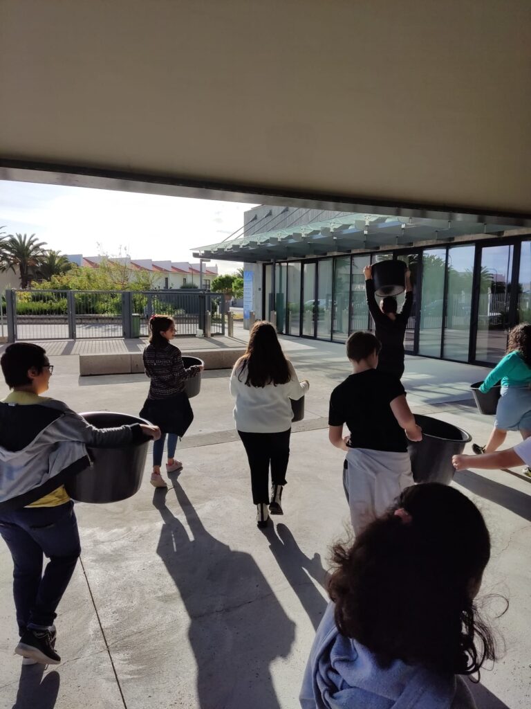 Foi sugerido que, uma vez por semana, na aula de Cidadania, cada turma procedesse à limpeza do espaço exterior da nossa escola. Munidos de baldes e luvas lá foram eles à caça dos resíduos.
